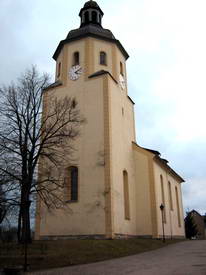 neuen Kirche mit einem 37 m hohen Turm, die an der Stelle einer alten Kapelle errichtet wurde.